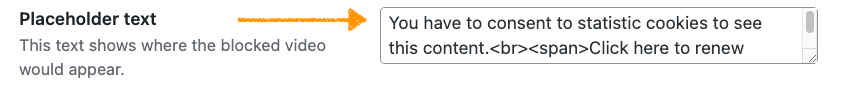 - (Optional) In Placeholder text type the text that will appear in place of the blocked video.