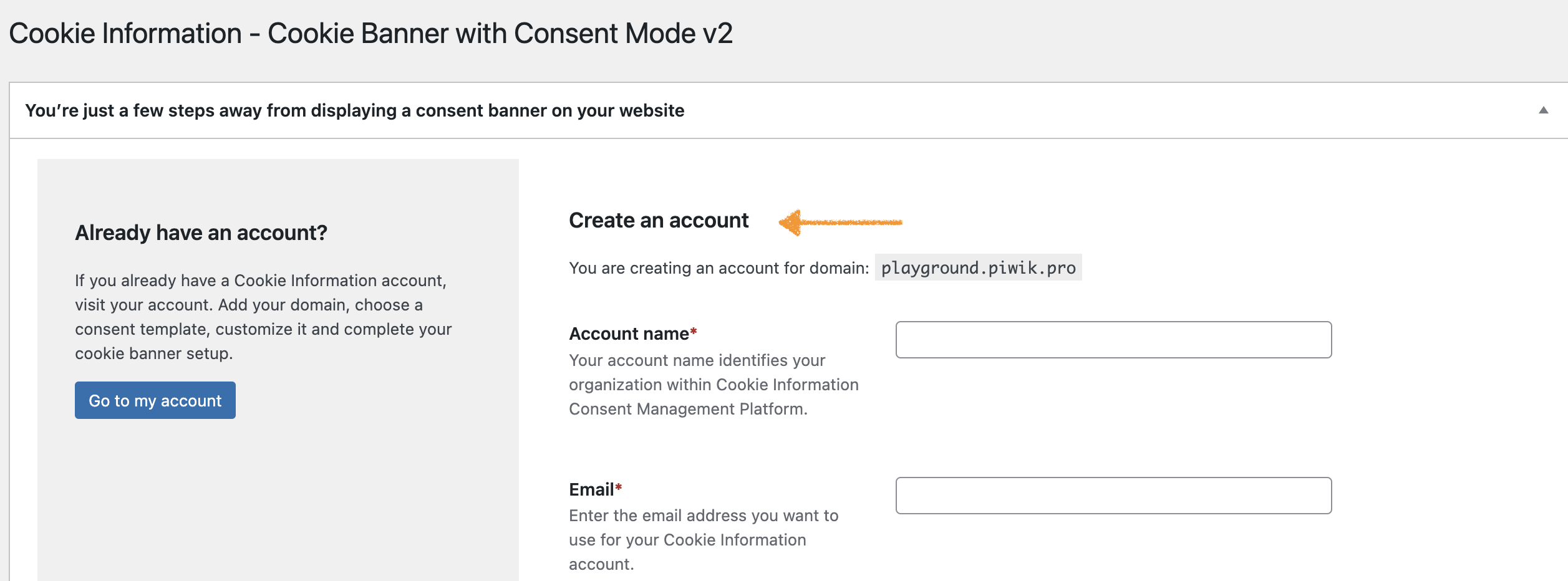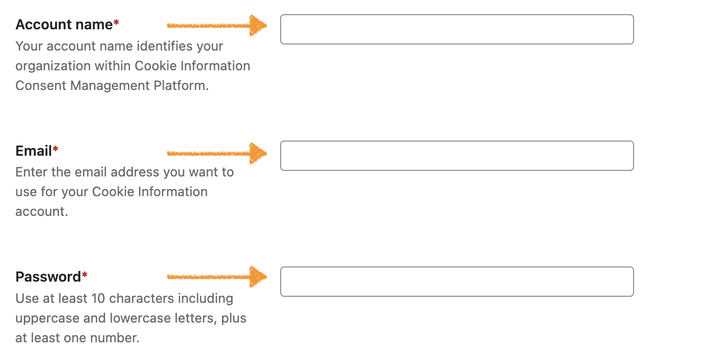 - Email: Enter the email address you want to use for your Cookie Information account.