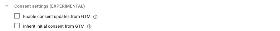 - In Consent settings, make sure Enable consent updates from GTM and Inherit initial consent from GTM are unchecked.