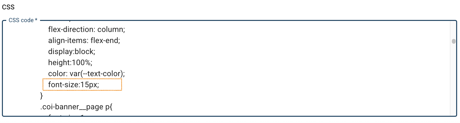 8. To change the font size, update the pixel value in the font-size property.