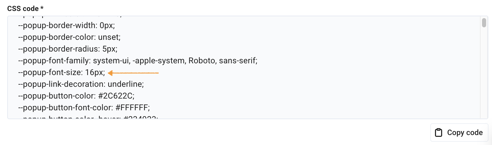 7. Find the variable --popup-font-size.
