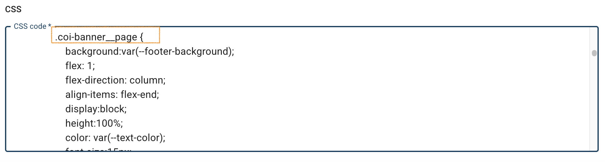 7. Find the CSS class .coi-banner__page.