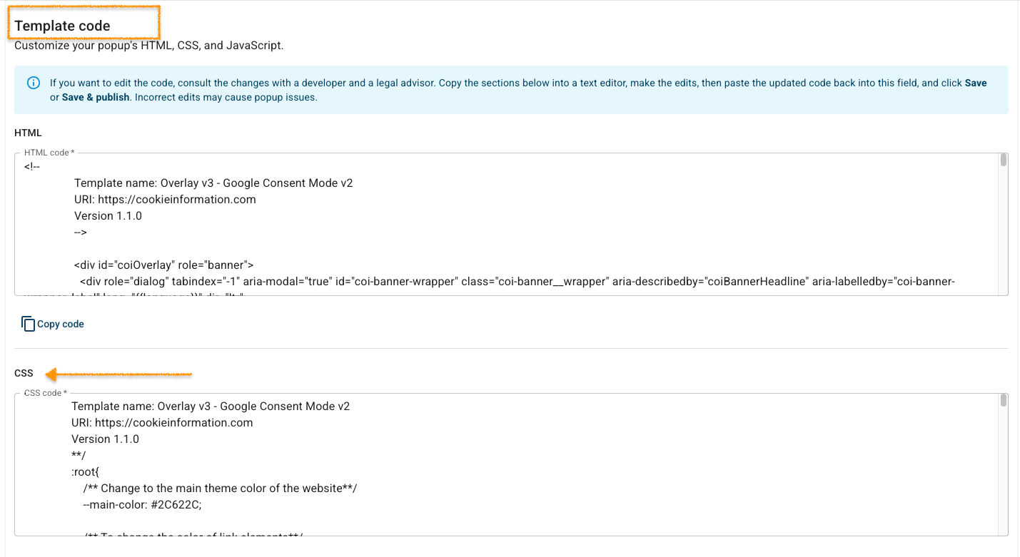To change the size of the consent Overlay v2 and Overlay v3 templates, follow these steps: