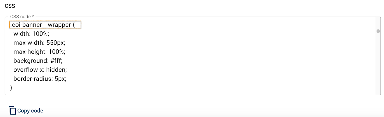7. In CSS code, find the CSS class .coi-banner__wrapper.