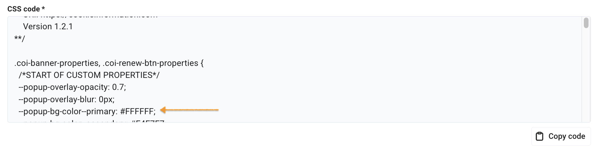 7. If you want to change the background color of the consent popup version 1.2.1, go to CSS code*.
