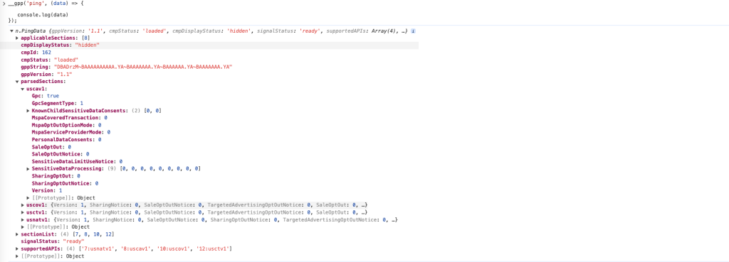parsedSections.uscav1.Gpcobject should return the valuetrue. - If the GPC signal is disabled, the