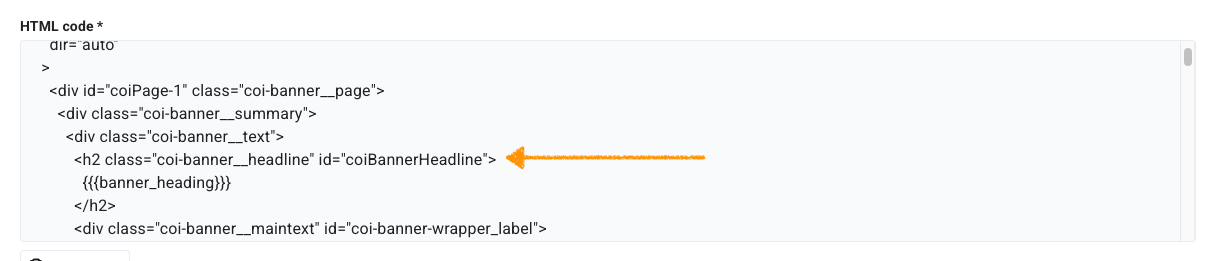 4. In Cookie policy, change the h2 tags to an element of your choice, for example <p>.