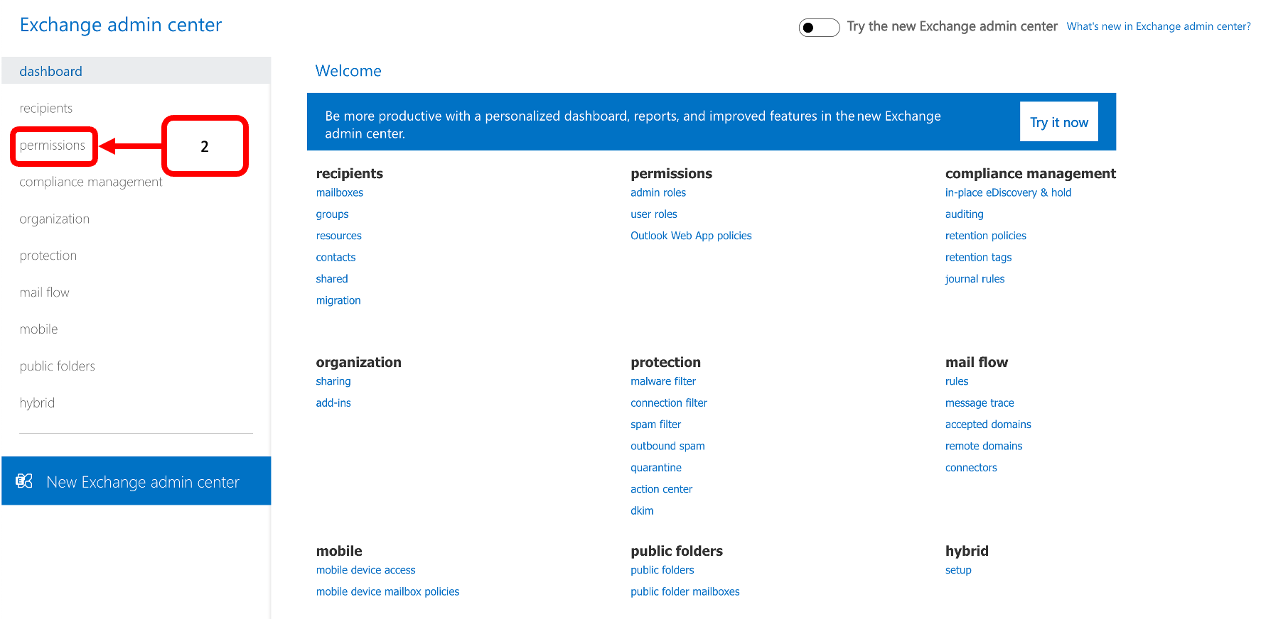 - Go to Exchange Admin Center on your Exchange server (https://
