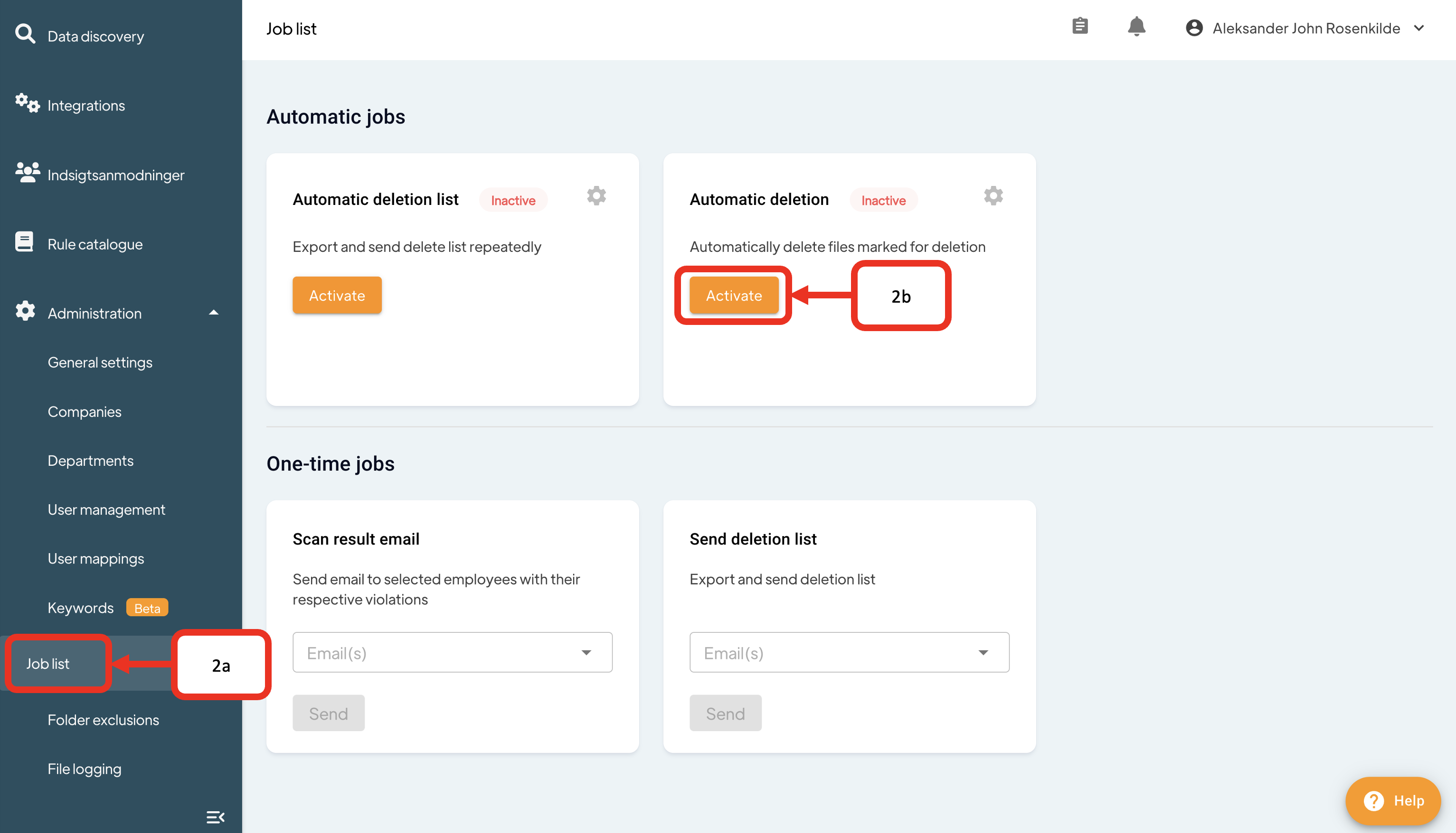 - Click Job list (1a)and Activate (1b)