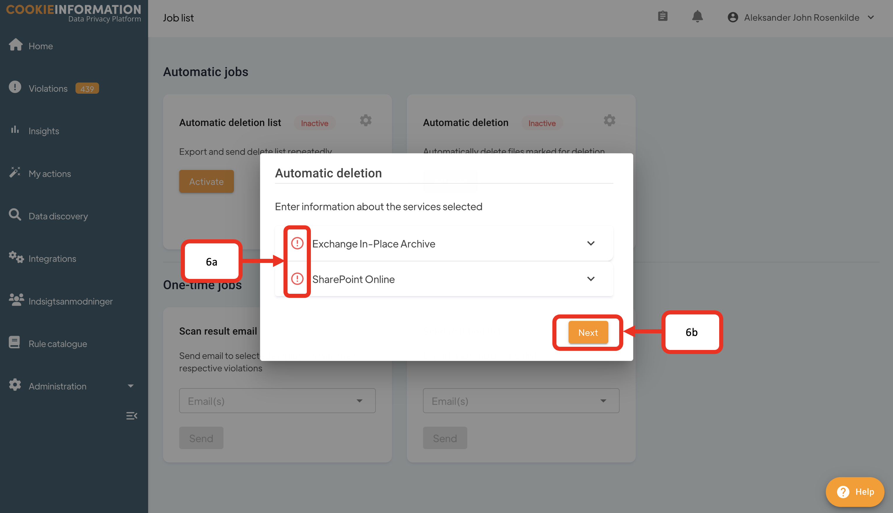 Data Discovery with Cookie Information provides support for an automated deletion job. By setting up this job, you can ensure that any identified violations will be deleted, eliminating potential risks for your organization.