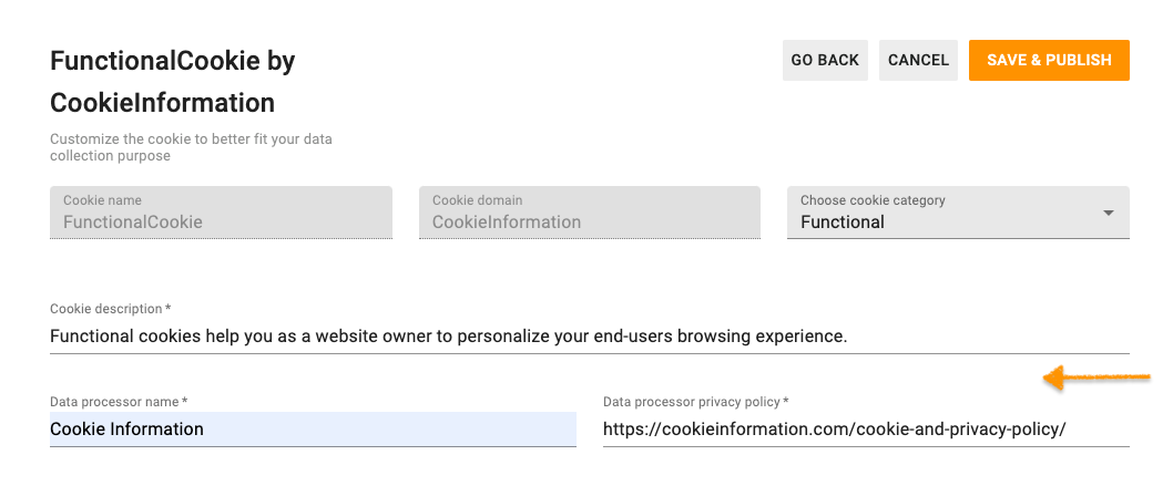 Note: If the cookie expiry value you want to choose is not listed, contact us at support@cookieinformation.com.