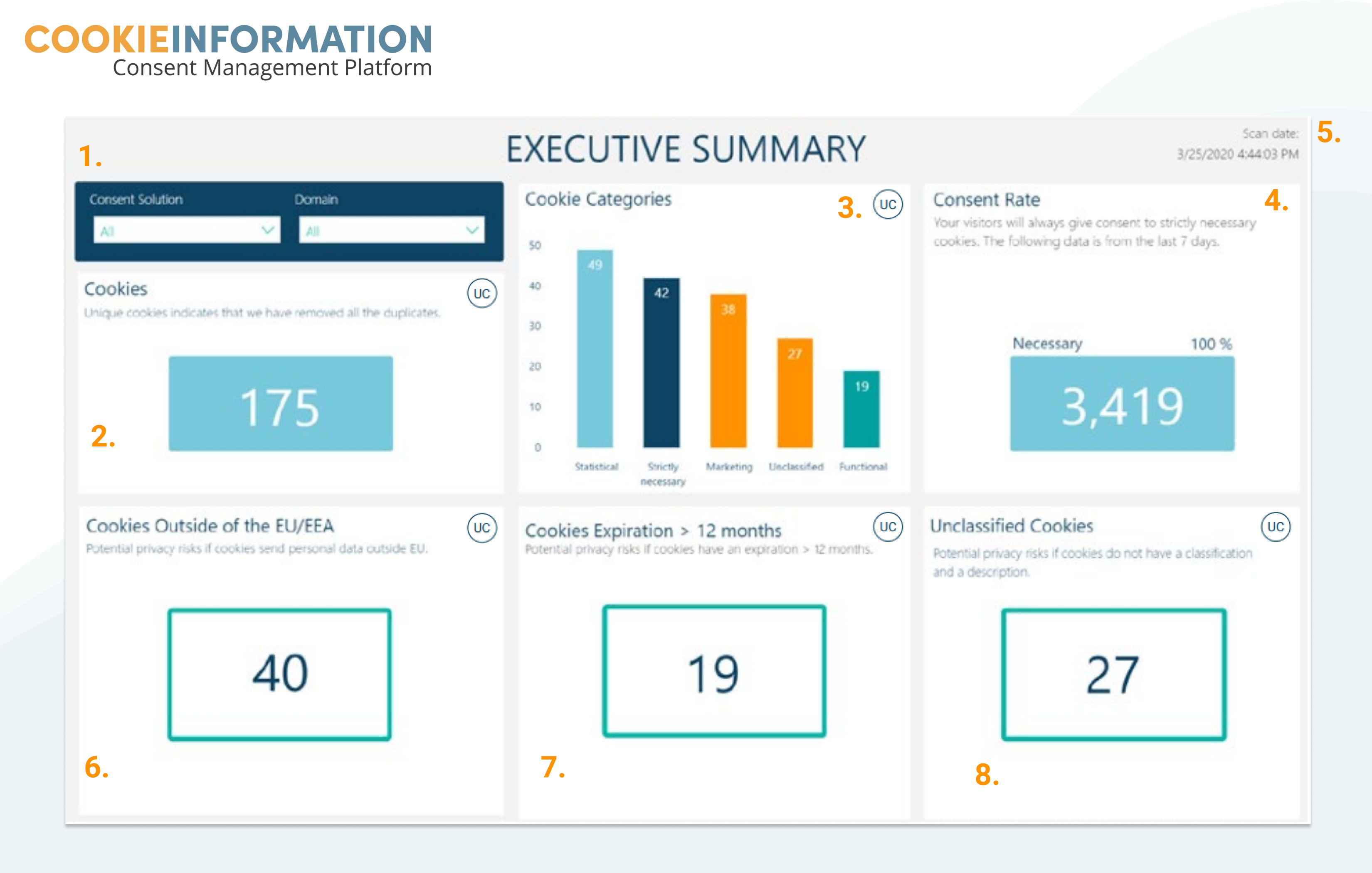 Our compliance dashboard is a helpful tool which can enable you to gather an overall view of which domains have unclassified cookies.