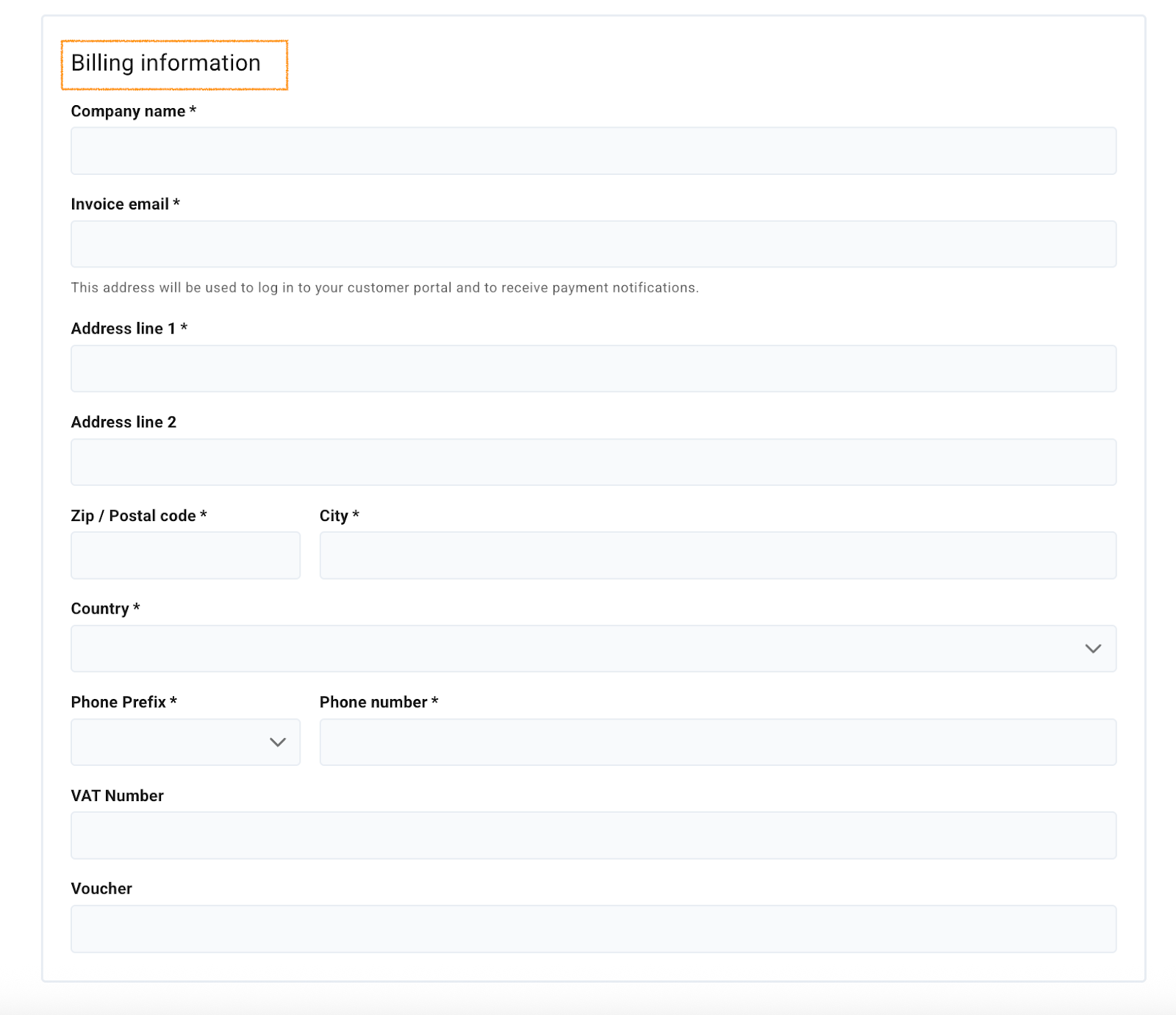 - In Billing Information, fill out the form.